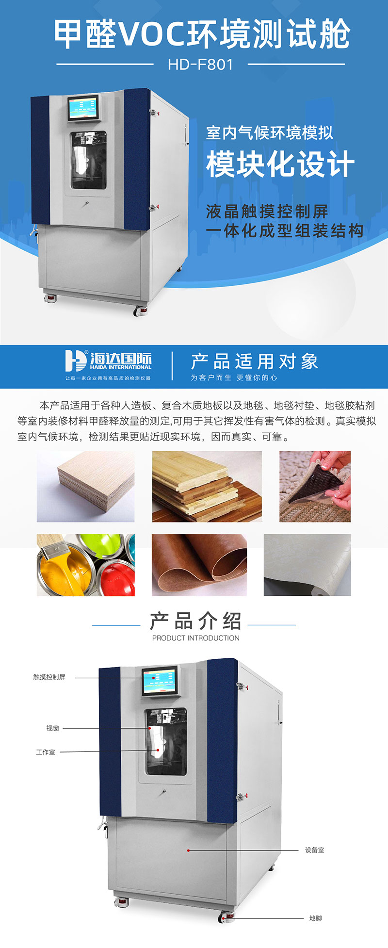 VOC甲醛試驗箱是根據(jù)國標GB18580-2017和ASTMD6007-2、EN717-1、ANSI/BIFMAX7.1-2007開發(fā)的一套專門針對板材TVOC總揮發(fā)物檢測的1m3氣候箱,其特點是可最大限度的模擬室內氣候環(huán)境,檢測結果更貼近現(xiàn)實環(huán)境,因而真實、可靠。