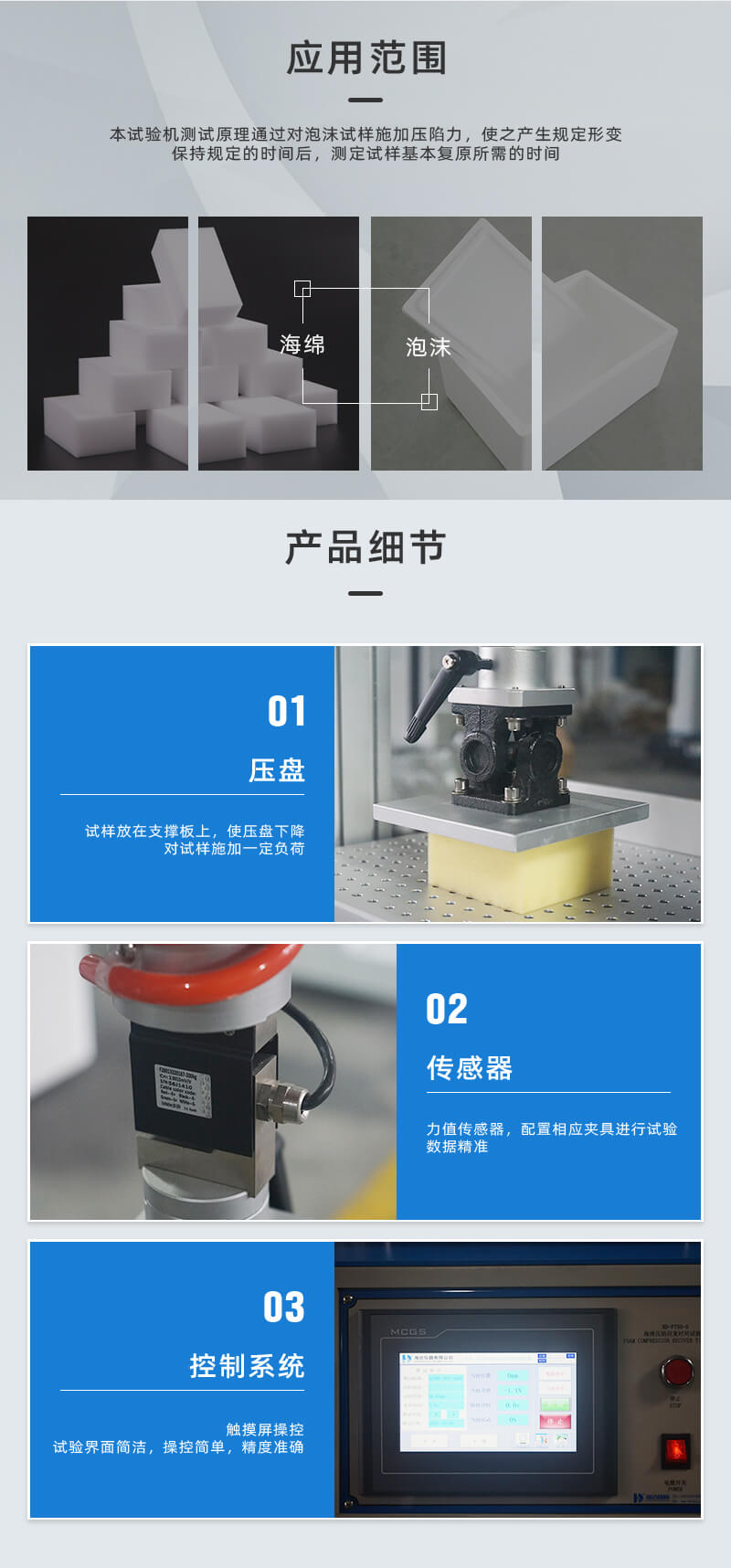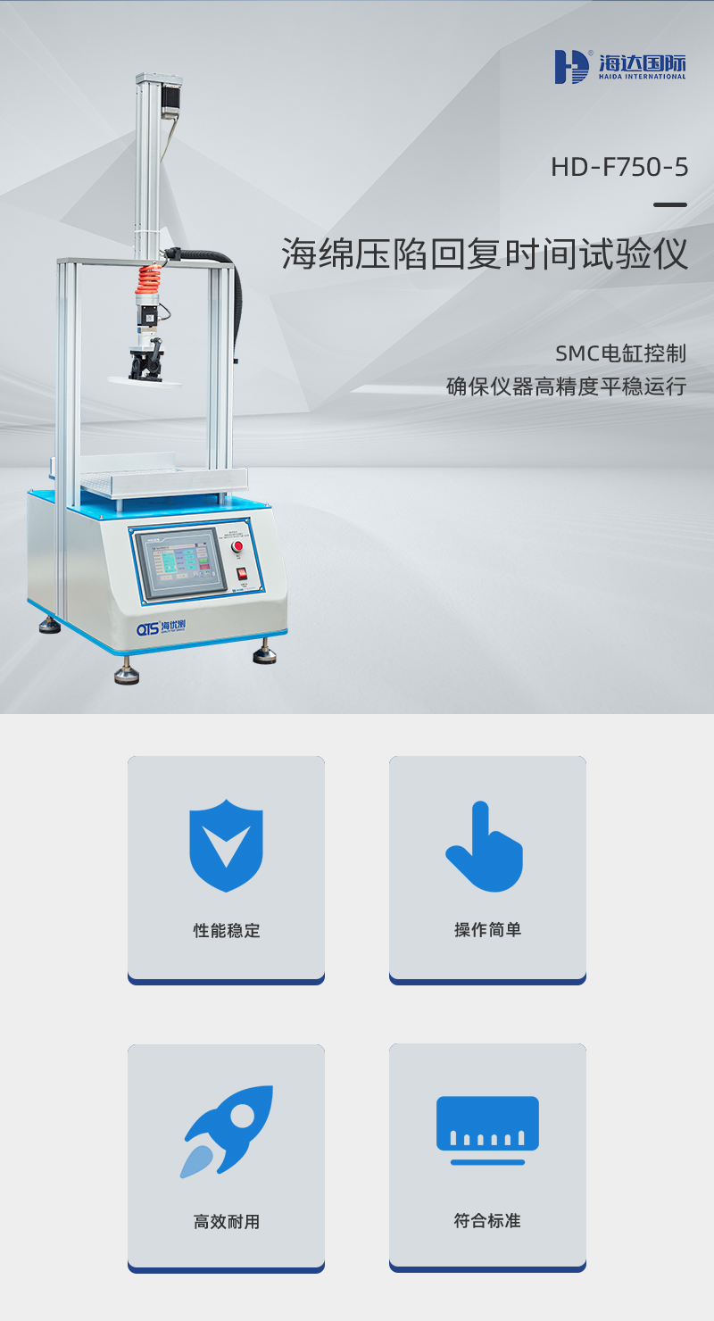 海綿壓陷回復(fù)時(shí)間試驗(yàn)儀測(cè)試原理是對(duì)泡沫試樣施加壓陷力,使之產(chǎn)生規(guī)定形變,保持規(guī)定的時(shí)間后,測(cè)定試樣基本復(fù)原所需的時(shí)間。